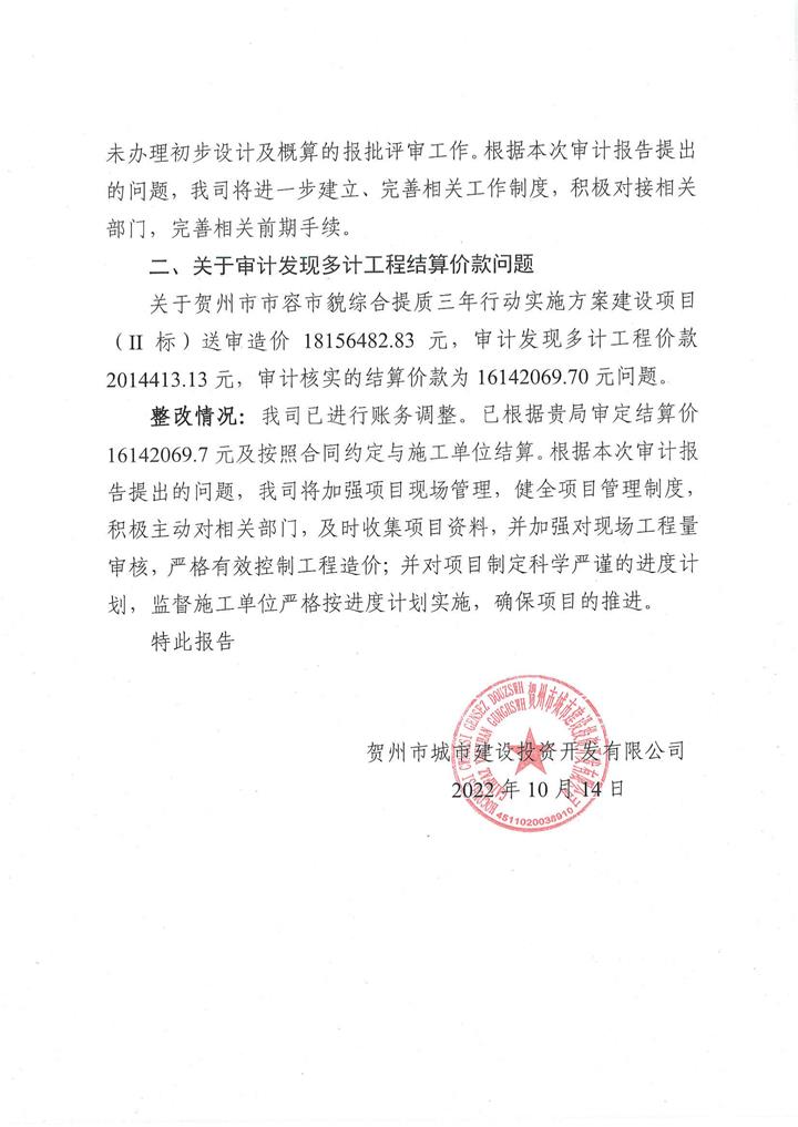 上一篇:城投公司關(guān)于賀州市愛蓮湖生態(tài)保護(hù)及基礎(chǔ)設(shè)施PPP項(xiàng)目結(jié)算審計(jì)整改情況的報(bào)告
